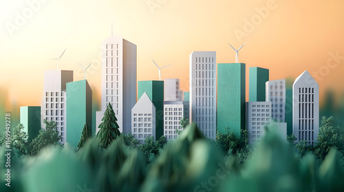 Obraz premium Eco-Friendly Papercut Cityscape with Sustainable Architecture and Renewable Energy Concepts