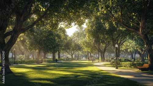 Obraz premium Eco-Friendly Park Under Tree Canopy