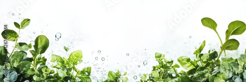 Fototapeta premium eco-friendly plant patterns, fresh and natural, a minimalist background with stylized hydroponic plants, water droplets, and geometric patterns, reflecting sustainable agriculture