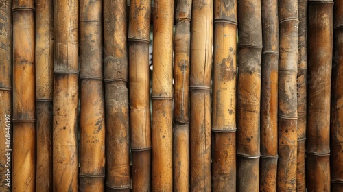 © Ramzan, Fototapeta premium Eco-friendly screen wall made from bamboo poles arranged in a staggered vertical pattern