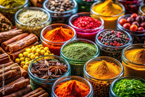 © chaowalit, Fototapeta premium Eco-Friendly Spice & Herb Containers - Portrait Photography