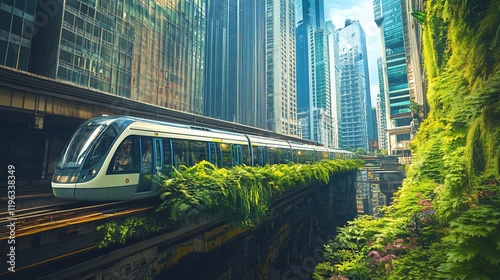 © rawdesign, Fototapeta premium Eco-Friendly Urban Transit: A Green City's Future