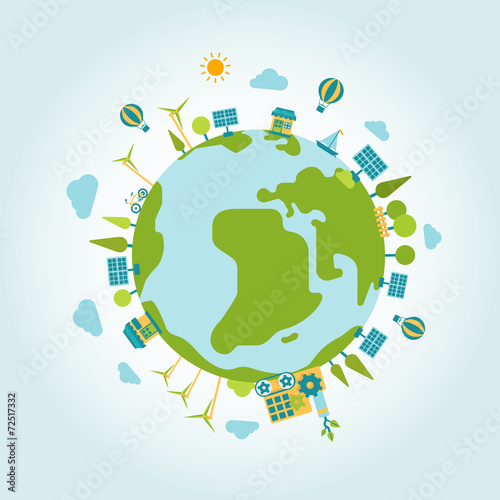 © Sentavio, Naklejka premium Eco green energy planet world globe modern flat style template