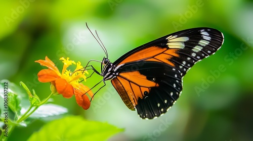 © Jakkarin, Fototapeta premium Eco System Harmony: Vibrant Butterfly on Flower in Forest - Conservation Concept