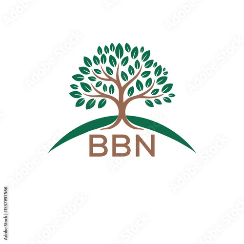 © nazmun, Obraz premium Eco Tree Logo with BBN Text – Green Nature Concept Emblem Design. BBN Letter Logo.