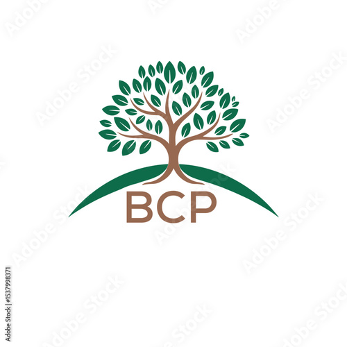 © nazmun, Obraz premium Eco Tree Logo with BCP Text – Green Nature Concept Emblem Design. BCP Letter Logo.