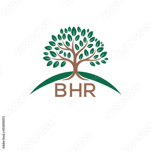 © nazmun, Obraz premium Eco Tree Logo with BHR Text – Green Nature Concept Emblem Design. BHR Letter Logo.