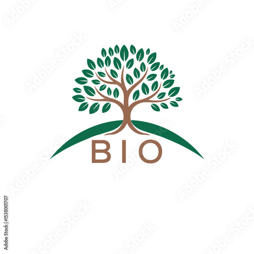 © nazmun, Obraz premium Eco Tree Logo with BIO Text – Green Nature Concept Emblem Design. BIO Letter Logo.
