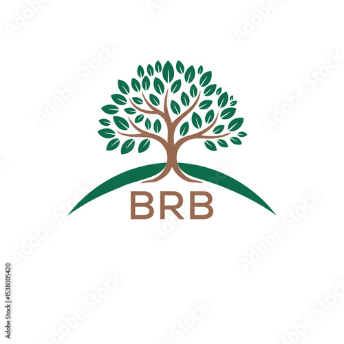 © nazmun, Obraz premium Eco Tree Logo with BRB Text – Green Nature Concept Emblem Design. BRB Letter Logo.