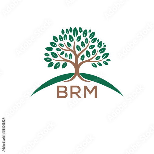 © nazmun, Obraz premium Eco Tree Logo with BRM Text – Green Nature Concept Emblem Design. BRM Letter Logo.