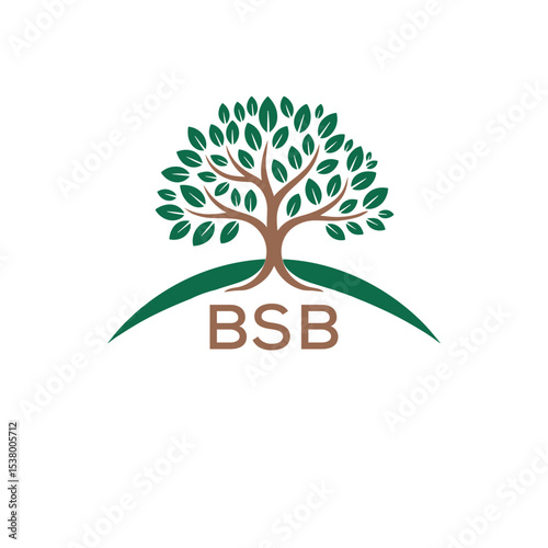 © nazmun, Obraz premium Eco Tree Logo with BSB Text – Green Nature Concept Emblem Design. BSB Letter Logo.