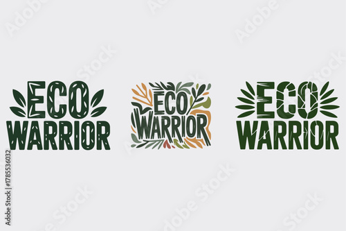 Fototapeta premium Eco Warrior text logos with leaves and branches on light background nature green