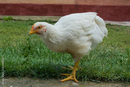 © MihaiGabi, Fototapeta premium Ecological free chicken eating grass