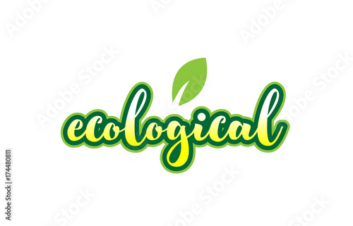 Fototapeta premium ecological word font text typographic logo design with green leaf