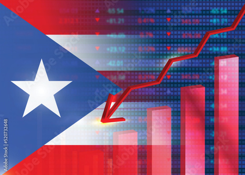 © Rumana, Fototapeta premium Economic crisis in Puerto Rico.Financial crisis concept.Puerto Rico flag with stock chart