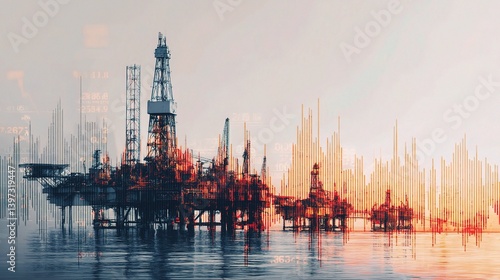 © WS Studio 1985, Fototapeta premium Economic Data Visualized with Oil Platform and Rising Trends Background