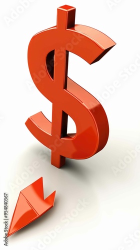 © roongtiwa, Fototapeta premium Economic Downturn Concept - Shrinking Dollar Sign with Downward Arrow Symbolizing Declining Interest Rates