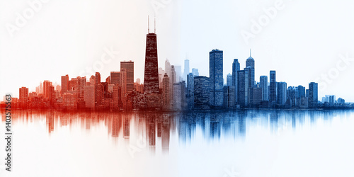 © Thananatt, Obraz premium Economic growth and inequality policy in urban development chicago skyline infographic analysis modern environment