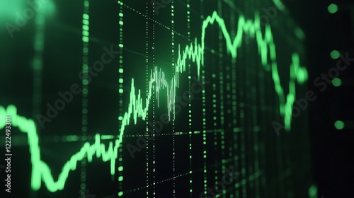 © Denis, Fototapeta premium Economic growth graph: creative abstract modern 3D background in green tones with futuristic design elements, symbolizing innovation, progress, and sustainability in financial and economic development