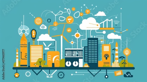 © kitidach, Naklejka premium Economic growth indicators, sustainable tech solutions, wearable energy storage devices, flat design illustration