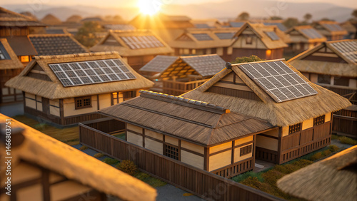 © prasitphoto, Obraz premium Economic Inequality Poverty Reduction Sustainable housing with solar panels promotes economic growth while addressing inequality and poverty