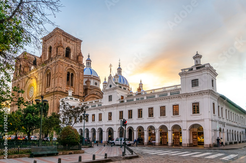 © Angela Meier, Fototapeta premium Ecuador in the city of Cuenca. On the Plaza Central, in the background the new Cathedral.