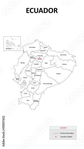 Fototapeta premium Ecuador Map. State and district map of Ecuador. Administrative map of Ecuador with states and boundaries in white color.