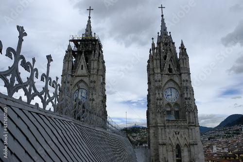 © Marko, Obraz premium Ecuador Quito - Church Basilica of the National Vow - Face of the clock towers