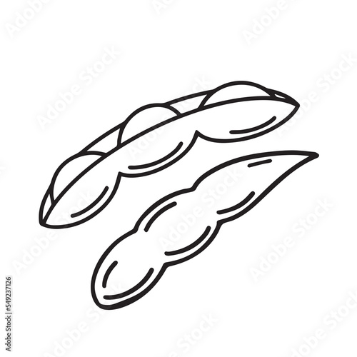 © Amanda Alamsyah, Fototapeta premium Edamame vegetable bean vector icon drawing with clean cartoon flat art style drawing isolated on plain white background. Black and white pictogram drawing. Opened edamame japanese vegies.