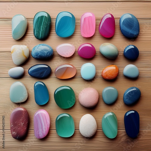 © Yvonne Bogdanski, Obraz premium Edelsteine sortiert nach Farbe