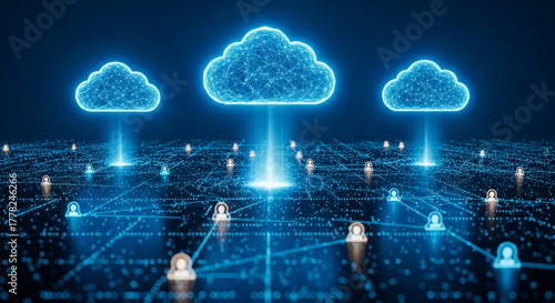 © AucArtStudio, Fototapeta premium Edge computing networks cloud network connection data center analytics digital infrastructure internet of things AI security scalability latency optimization collaboration