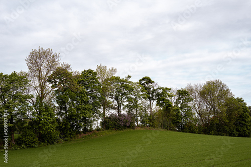 © Øyvind, Naklejka premium Edge zone with trees between two fields at Toten, Norway, in early summer.
