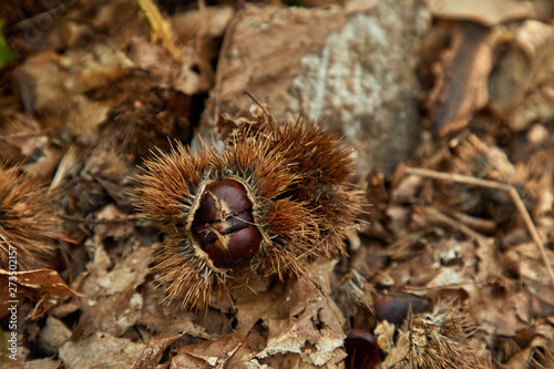 Obraz premium edible chestnuts on the ground