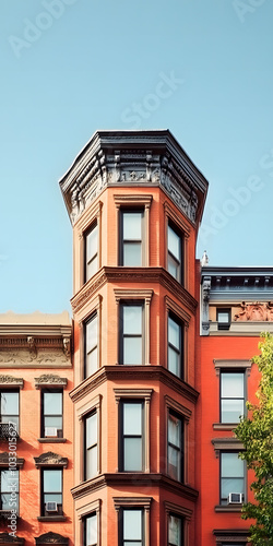 © CarlosEduardo, Fototapeta premium Edifício histórico de tijolos com detalhes arquitetônicos intrincados