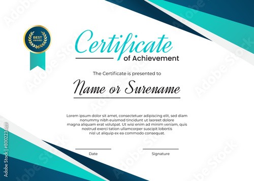© Genzo, Fototapeta premium Editable Modern Elegant Certificate Template. Certificate Template with Flat Design
