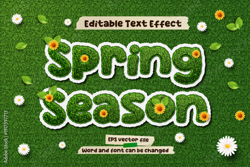 © yustika, Fototapeta premium Editable text spring season 3D text effect. Green grass textured text style