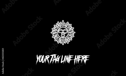 © Michael Sugita/Wirestock Creators, Fototapeta premium Editable vector logo of sun with a face with a space for the tagline on a black background