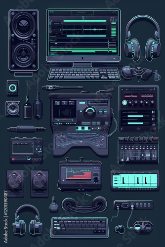 Fototapeta premium Editing atmosphere: screen with a video project and an organized workspace