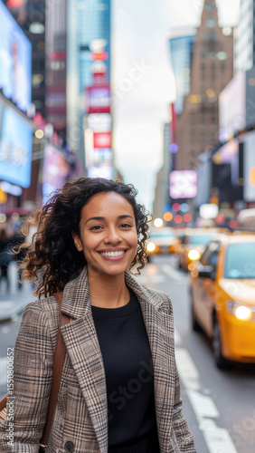© Kyeema Mizell, Fototapeta premium Editorial Street Shot of a Hispanic Woman in Urban Sunset