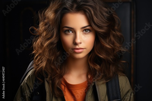 © 4kclips, Fototapeta premium Education A female student with books and a backpack - stockphoto concepts