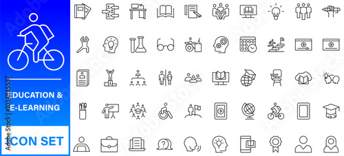 © Muhammad A. grapix, Naklejka premium Education and Learning web icons in line style. Online Education Line Outline Icon Set Vector. Editable Stroke.