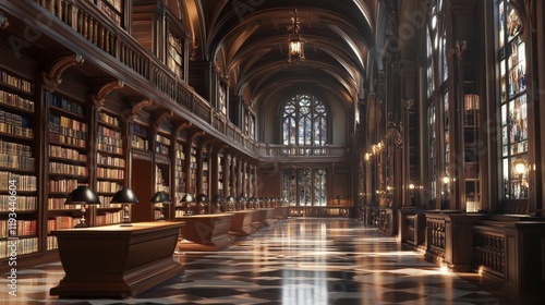 © Elkhan Babayev, Obraz premium Education background enriched by library resources and academic experiences at school, university, and beyond.