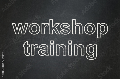 © Maksim Kabakou, Obraz premium Education concept: Workshop Training on chalkboard background