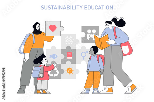 © inspiring.team, Naklejka premium education. Flat Vector Illustration