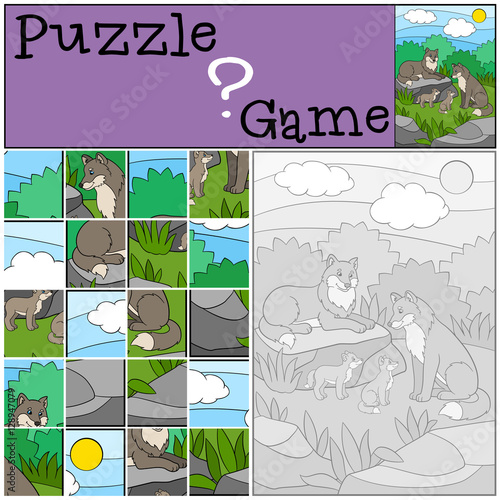 © ya_mayka, Fototapeta premium Education game: Puzzle. Wolf family.