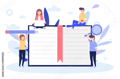 Obraz premium Education online. Learning concept. Cartoon flat vector illustration isolated...