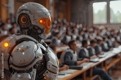 © Chanwit, Fototapeta premium Education setting with AI tutor assisting students