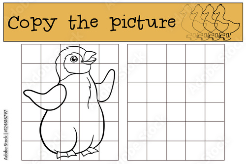 © ya_mayka, Fototapeta premium Educational game: Copy the picture. Little cute baby penguin smi