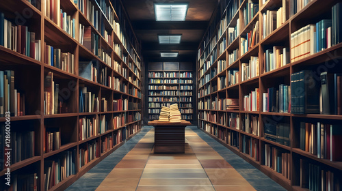 © imran, Obraz premium Educational institution repository filled with bound knowledge resources -