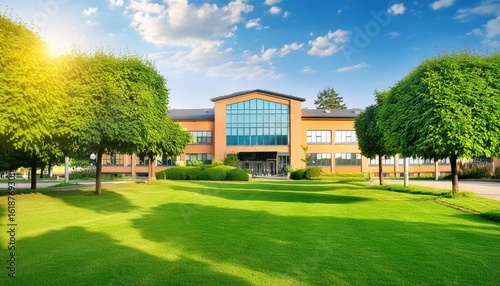 © studioforty3, Fototapeta premium Educational School Building Background for Back to School Themes